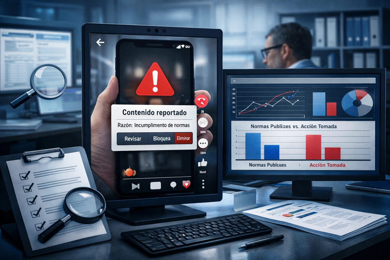 El programa Auditing Platform Content Moderation evalúa si TikTok aplica de manera coherente sus normas comunitarias mediante un proceso sistemático de detección y reporte de contenido que viola sus políticas.