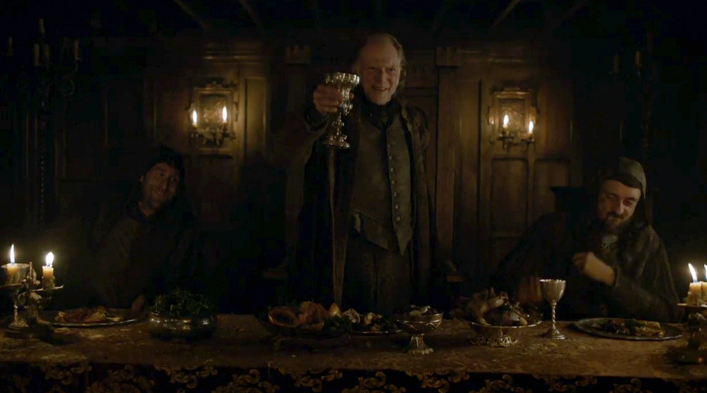 Pero mientras la voz en off de Sansa exclama: «Es todo en lo que pienso, en lo que me quitaron», nos topamos con Walder Frey y sus hombres que lucen bastante felices entre ellos.