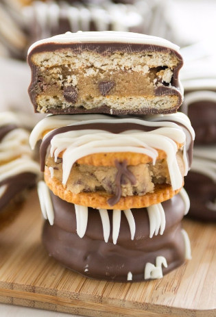 12. Sándwiches con galleta Ritz y masa para galletas cubiertos de chocolate: