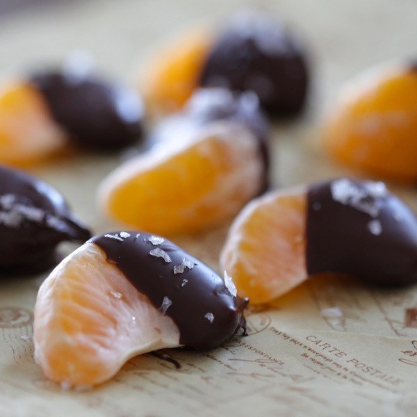 5. Mandarinas sumergidas en chocolate amargo con hojuelas de sal: