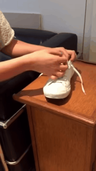 Paso 3: Aún con el mismo cordón, pásalo por el otro agujero interior y luego llévalo hasta el otro extremo de la zapatilla. Guíate por esto: