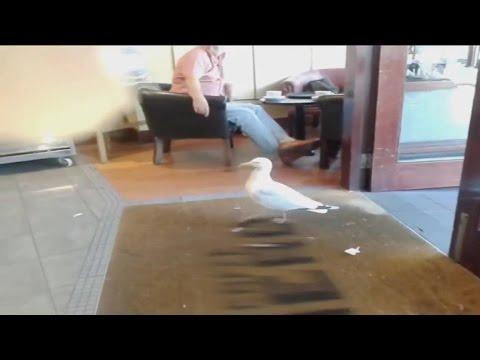 Se trata de una astuta y sinvergüenza gaviota que vive en una ciudad costera y que a menudo entra a tiendas comerciales por un paquete de patatas fritas. Su método es simple. Cuando la puerta está abierta entra al lugar, camina tranquilamente hasta la zona de los snacks, elige un paquete de patatas fritas, lo toma con su pico y se lo lleva.
