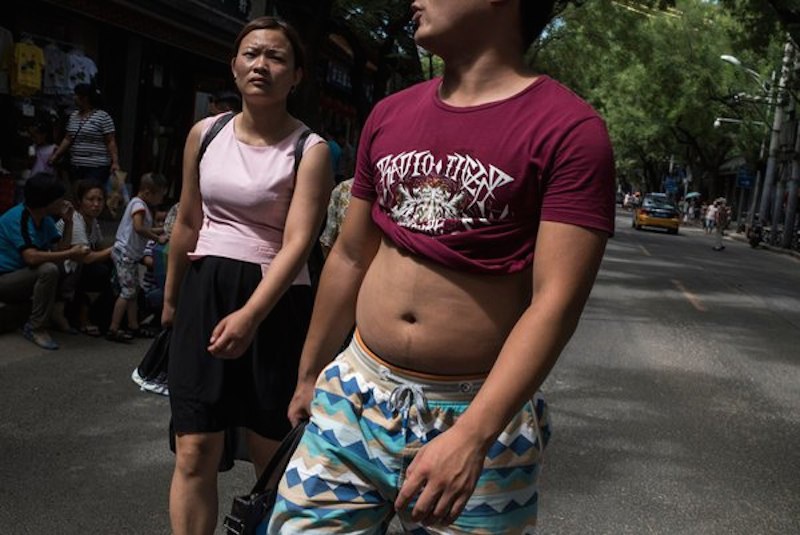 Sí, mientras en México queremos sumir la panza en China simplemente se lenvantan la playera y andan por todos lados con las llantitas al aire y entre más grasa tengas más popular serás. Esta moda inició a raíz de la ola de calor que asota este país y fue algo que los jovenes adoptaron y ahora es toda una moda.