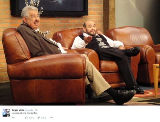 En su cuenta de Twitter, Edgar Vivar, mejor conocido como el Señor Barriga de la serie El chavo del 8, compartió la última fotografía que les tomaron a él y a Rubén Aguirre.