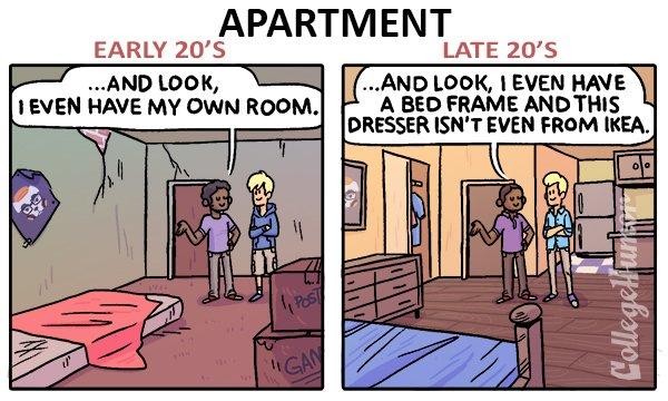 Estas ilustraciones muestran cómo es la vida a principios y finales de los 20
