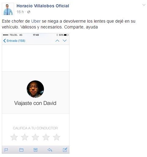INDIGNANTE: Horacio Villalobos denuncia robo en Uber