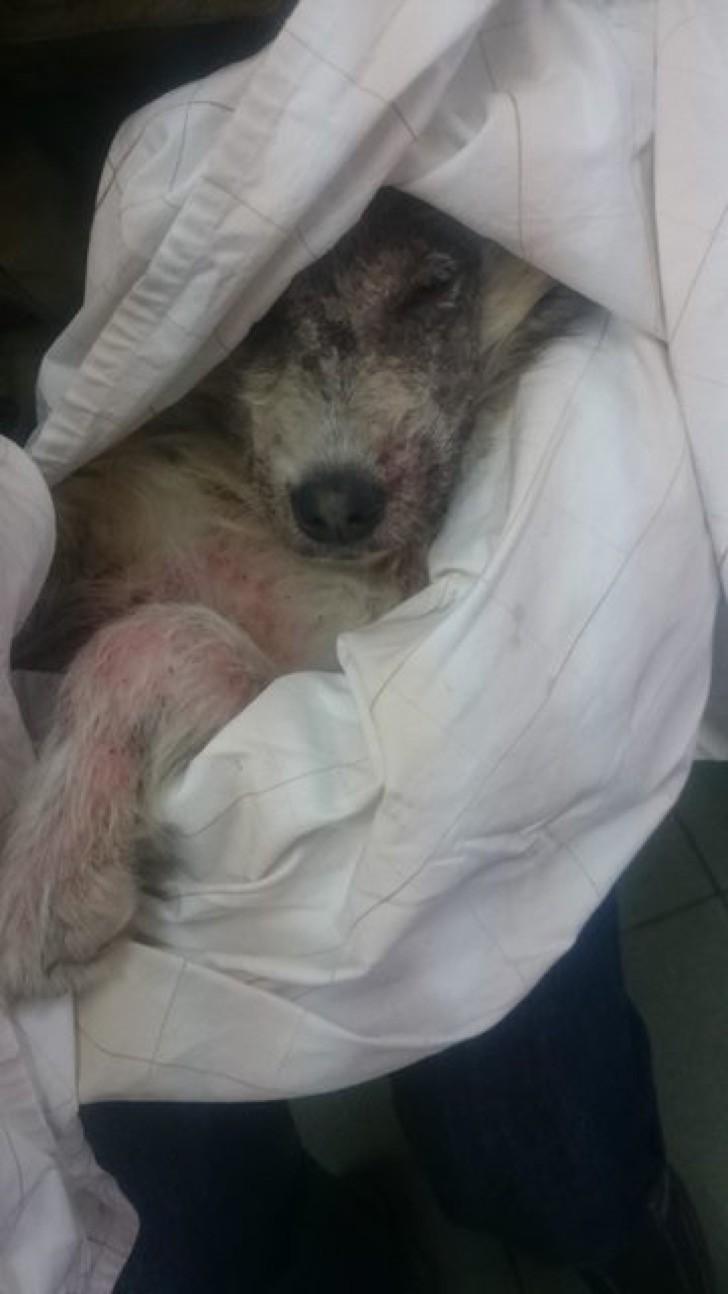 Entonces Anita, junto a una amiga, llevó al perro al veterinario, donde le dijeron que tenía sarna. Allí le suministraron antibióticos, lo alimentaron, lavaron y cuidaron.
