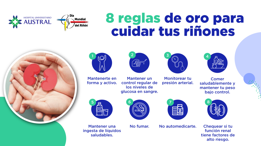 Para cuidar los riñones, los especialistas recomiendan mantener una buena hidratación, llevar una alimentación equilibrada, realizar actividad física con regularidad y controlar enfermedades como la diabetes y la hipertensión. También es importante realizar chequeos médicos periódicos que permitan detectar a tiempo cualquier problema.