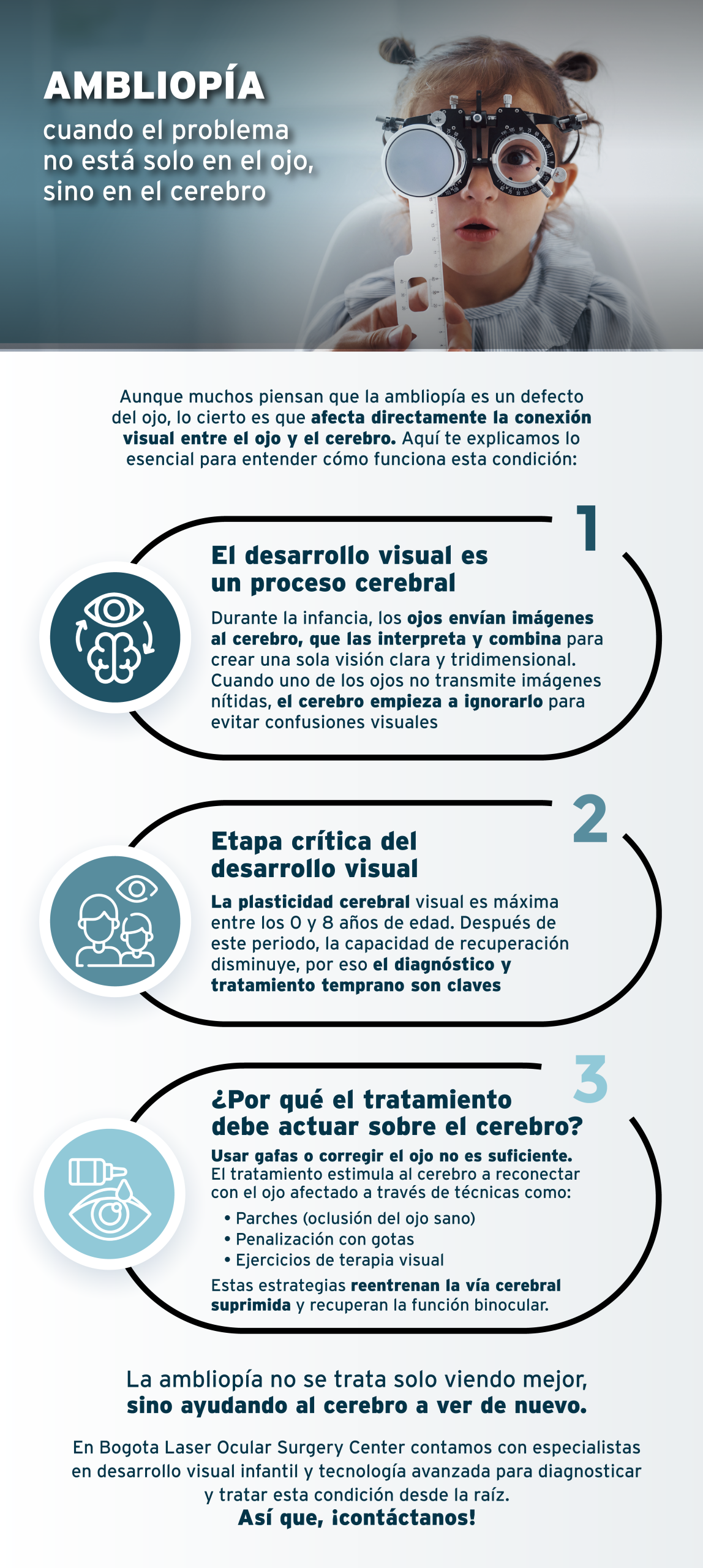 Este problema suele aparecer en niños pequeños, cuando el sistema visual aún está en desarrollo. Si no se detecta a tiempo, el cerebro puede acostumbrarse a ignorar la información visual del ojo más débil, lo que dificulta que la visión se desarrolle correctamente.