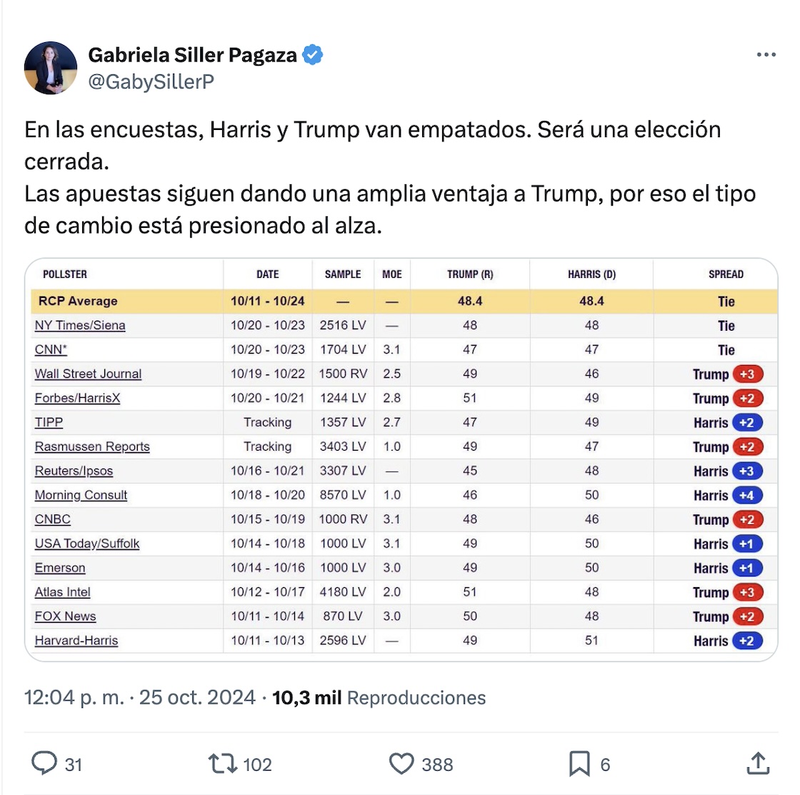 Sí, desde que arrancó octubre de 2024 los mercados y las monedas internacionales han tenido cambios importantes.