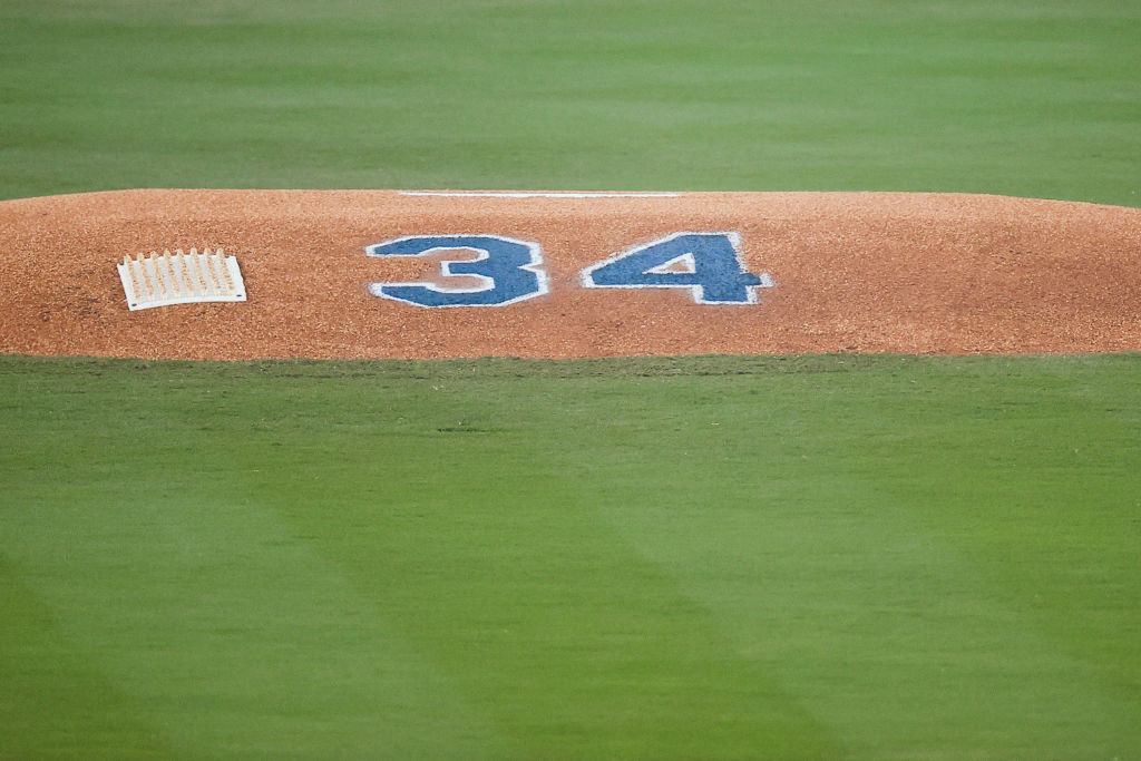 El homenaje para Fernando Valenzuela consisitió en no hacer el tradicional lanzamiento de exhibición antes de empezar el Juego 1 de la Serie Mundial 2024. En lugar de eso, tocaron con la pelota el número 34, grabado sobre la lomita donde el Toro hizo historia, para luego dejar ahí la pelota junto a su legendario dorsal.