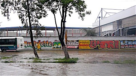 Añadió que avenida Jinetes, a la altura del Sumesa de Las Arboledas, también registró encharcamientos.