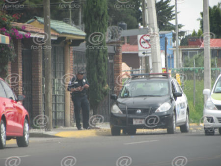 Al exterior de una vivienda de dos niveles, ubicada sobre la calle Ruta de la Independencia, marcada con el número 500, se encuentra estacionado un vehículo con las insignias de la Dirección de Seguridad Pública de Toluca, encargado para vigilar la vivienda las 24 horas del día.