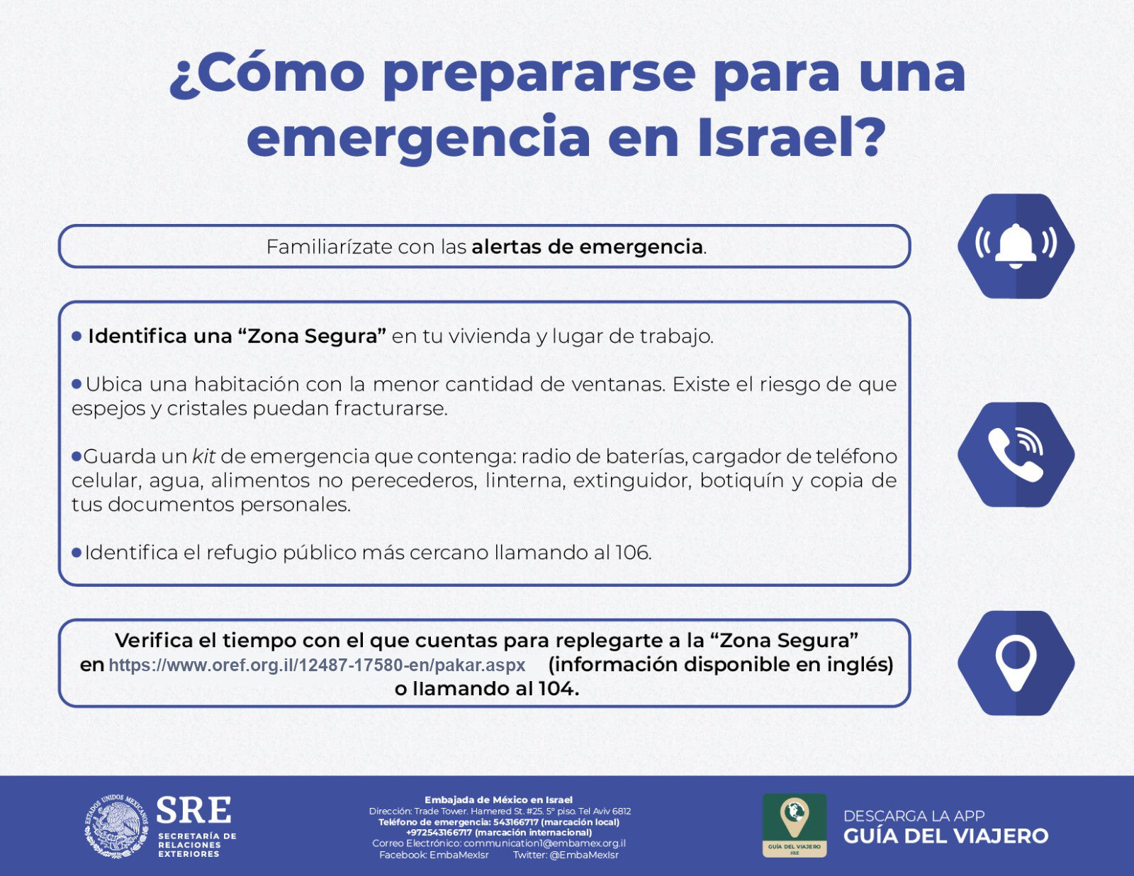 El Gobierno hizo un llamado a los mexicanos residentes en Israel para que tomen medidas adicionales de precaución y sigan las instrucciones de las autoridades de seguridad del país.