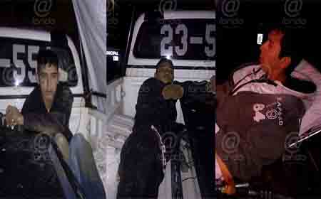 Al sitio arribaron varios uniformados quienes realizaron un operativo que culminó en calle 5 de mayo, de la colonia del mismo nombre, donde detuvieron a Daniel Hernández Gómez, de 21 años, Eduardo Saucedo Hernández de 19, y Carlos Hernández, de 17, asegurándoles 2 armas de fuego tipo escuadras de salva, las pertenencias de los pasajeros y una motocicleta sin placas de circulación tipo cargo, de color negro con anaranjado.