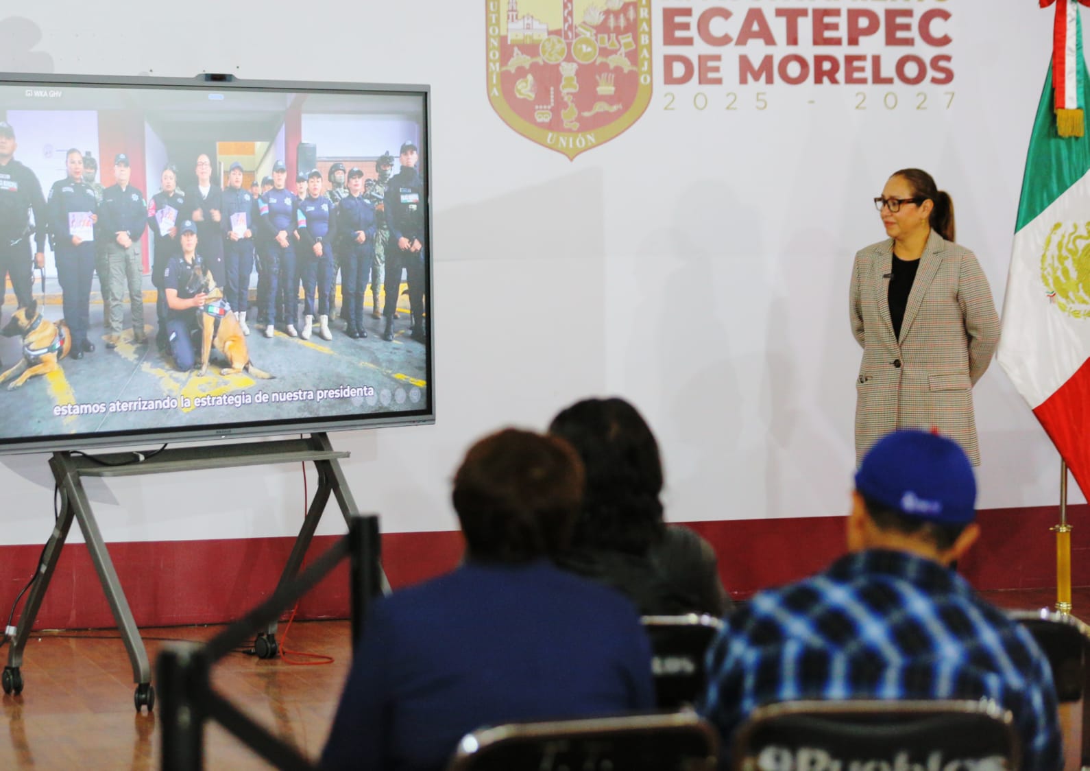 La alcaldesa confió en que la estrategia de seguridad de la presidenta Claudia Sheinbaum y la gobernadora Delfina Gómez ya se refleja en territorio para mantener a la baja 10 delitos de alto impacto, principalmente homicidios dolosos, robo de vehículos y extorsión.