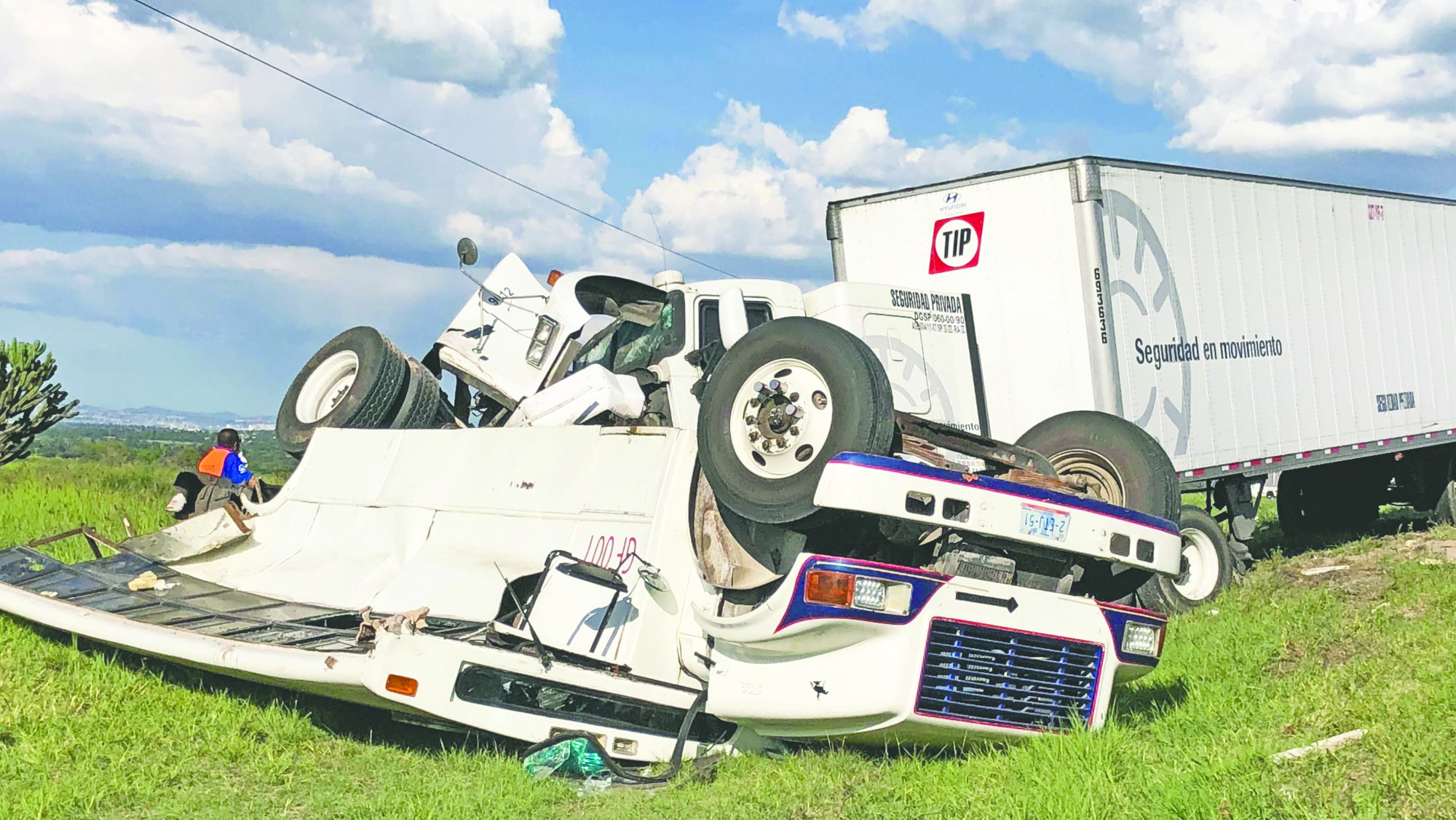 APASEO EL GRANDE.— Un saldo de una mujer fallecida y cinco personas más lesionadas dejó ayer un choque por alcance entre un camión del transporte de personal y un tráiler, en las inmediaciones de la carretera Celaya Cuota, a la altura de Apaseo El Grande.El accidente ocurrió cerca de las 4:00 de la tarde del sábado, cuando el conductor de un tráiler con caja seca avanzaba a exceso de velocidad sobre la vialidad en dirección a Celaya. Sin embargo, al llegar a la altura del kilómetro 26 de la vialidad, el chofer no se percató de que un camión de transporte de personal circulaba a baja velocidad por el carril de la derecha y no pudo esquivarlo, por lo que lo embistió y proyectó al acotamiento.LO APLASTA. Debido a la velocidad y el peso de los vehículos, las unidades avanzaron todavía unos 20 metros, terminando el tráiler aplastando al camión y dejando atrapados al interior al chofer y a cuatro pasajeros.De inmediato se pidió el auxilio de los cuerpos de emergencia, por lo que minutos después acudieron paramédicos de Capufe. Las víctimas fueron rescatadas y se les dio atención médica en conjunto con socorristas de la Cruz Roja de Celaya. MUERE EN LA AMBULANCIA. Apenas instantes después de subir a la ambulancia a una mujer que presentaba las lesiones más graves dejó de existir, por lo que se dio parte a la Procuraduría de Guanajuato.Personal del Servicio Médico Forense (Semefo) acudió para hacer el levantamiento del cuerpo mientras que los lesionados fueron trasladados al Hospital General de Celaya, mientras que elementos de la Policía Federal tomaron conocimiento del accidente.Cabe destacar que el chofer responsable del accidente se dio a la fuga del lugar del percance, sin que se supiera más sobre su paradero. leer más