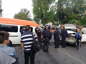 Reportes indican que el percance se registró alrededor de las 8:00 horas de hoy y participaron una camioneta del transporte público de la línea Autotransportes Benito Juárez Ruta 02, una camioneta Ford y dos automóviles particulares.