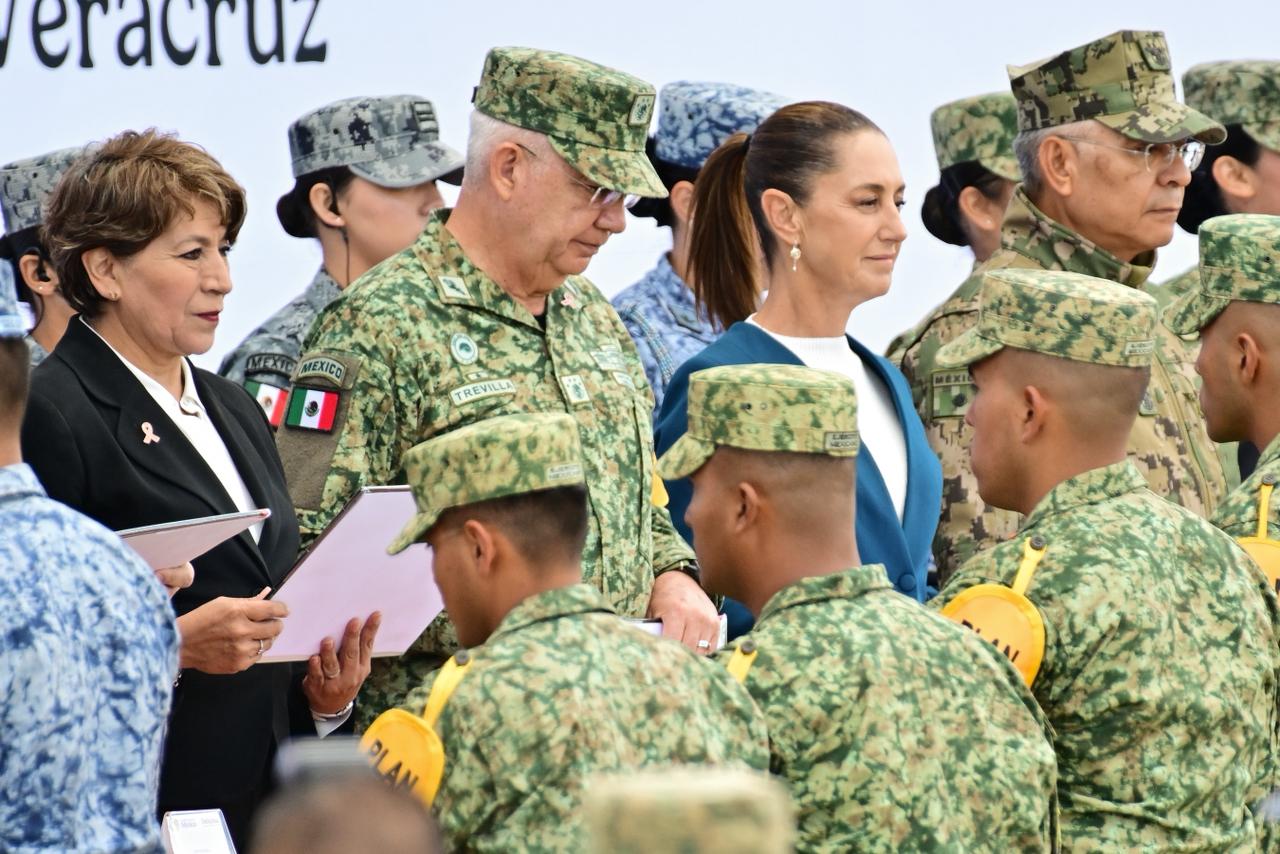 En el Centro Estratégico Militar de Acopio Santa Lucía se entregaron reconocimientos a elementos del Ejército, la Armada, Fuerza Aérea, Guardia Nacional y personal de diversas secretarías federales, así como a la CFE y a los “camineros” responsables de mantener y reparar la red carretera.