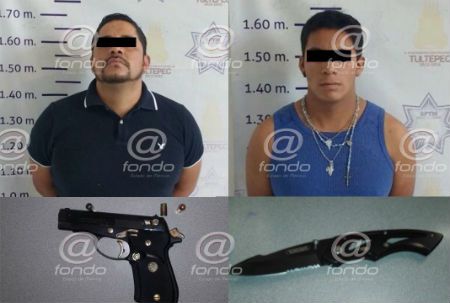 Expresó que los detenidos fueron presentados ante el Ministerio Público, junto con una pistola escuadra calibre .380, marca Browning Armas, con la leyenda BDA-380 425PY11196, con nueve cartuchos útiles, y una navaja de 20 centímetros de largo.