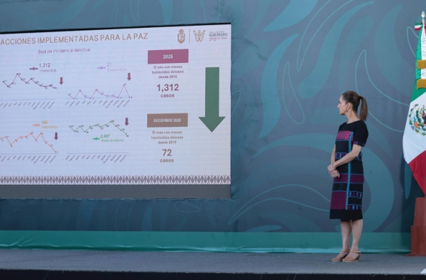 En Guerrero, el promedio diario de víctimas de homicidios dolosos pasó de 6.58 en octubre de 2024 a 2.32 en diciembre de 2025. Por ello, la reducción alcanzó 65 por ciento en ese periodo.