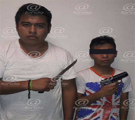 Los delincuentes, quienes viajaban en un Chevy Monza con cromática de taxi y una motoneta, fueron identificados como Iván Martínez Arcángel, de 16 años, y Javier Morales Santiago de 25, los cuales portaban un arma de fuego tipo escuadra, una mochila con cerca de 40 celulares y un arma punzocortante.