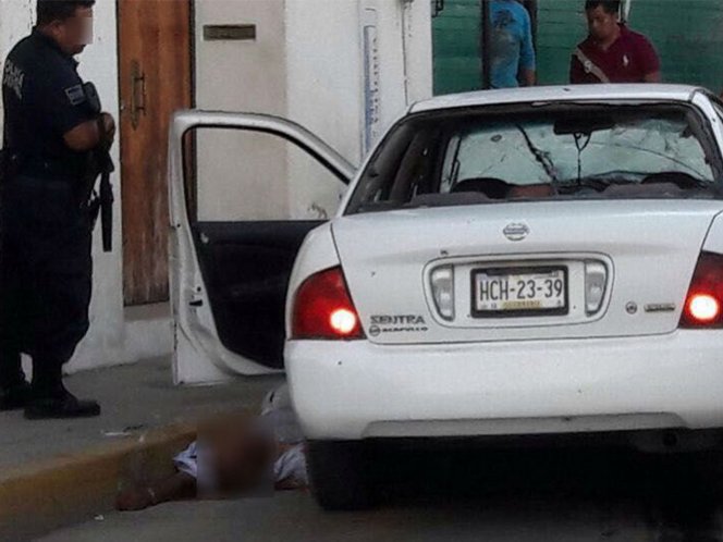 Los agentes circulaban por las calles del Centro en el interior de un auto de la marca Nissan tipo Sentra blanco con placas de circulación HCH2339 de Guerrero cuando fueron atacados.