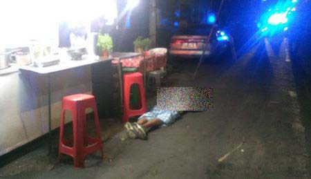 Tratando de escapar de sus captores, se echó a correr pero fue alcanzado por las balas quedando tirado boca abajo frente a la taquería.