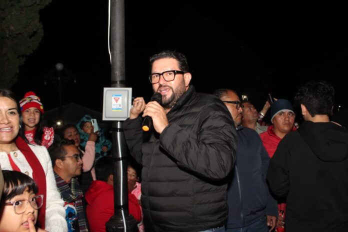 Almoloya de Juárez, Méx.- En un ambiente lleno de alegría y convivencia familiar, cientos de personas se reunieron este lunes en la Plaza Cívica de Almoloya de Juárez para presenciar el tradicional encendido del Árbol de Navidad, encabezado por el Presidente municipal Adolfo Solis Gómez, quien asistió acompañado de su familia.