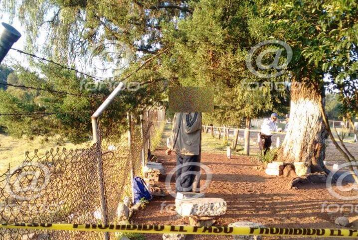 Empleados y personal de seguridad de las Piramides de Teotihuacan localizaron el cuerpo de un hombre colgado de un árbol atado de una soga al cuello alrededor de las 7:30 de la mañana.