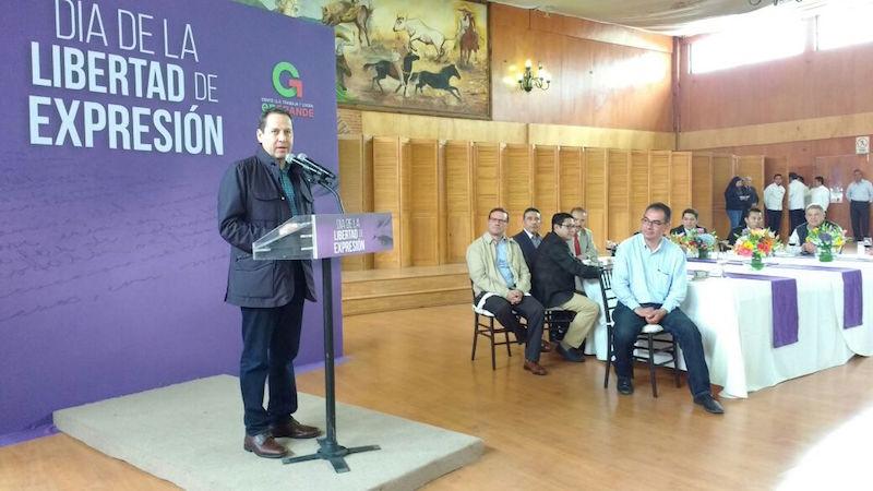 Al salir los invitados recibieron un minicomponente para conmemorar el día de la Libertad de Expresión por parte de la administración que encabeza el priista desde hace casi cinco años.