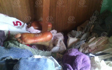 Servicios de Emergencias se trasladaron hasta el domicilio ubicado en la esquina de Anastasio Bustamante y Félix Zuluaga, en la colonia Darío Martínez, encontrando a la mujer que estaba tirada entre una cama y un mueble de madera, al cuerpo solo se le observaban los pies y parte de sus piernas debido a que taparon el cuerpo con la ropa.