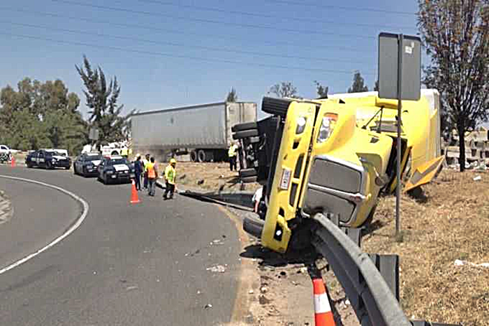 Los reportes preliminares señalan que el operador viajaba a exceso de velocidady perdió el control de la pesada unidad, quedando recostada sobre su lado izquierdo en la curva de la carretera.