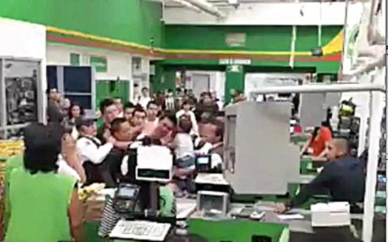 Al tratar de someter a los presuntos ladrones, éstos opusieron resistencia dando lugar a una pelea en el área de cajas del establecimiento.