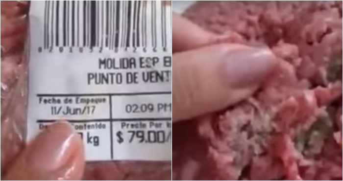En video compartido en YouTube se muestra el paquete de carne molida y la forma en que está rellenada.