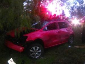 ZUMPANGO, Méx.- 8 DE JUNIO DE 2016.- Un hombre murió al chocar el vehículo que conducía en la carretera Zumpango-Cuautitlán, a la altura de San Pedro de la Laguna.