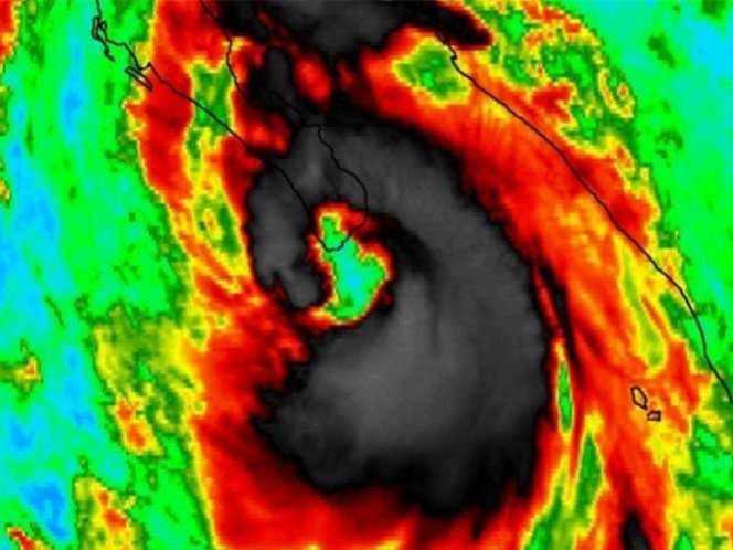En este momento, la parte sur del ojo del huracán aún se encuentra sobre Los Cabos y avanza con vientos de 150 kilómetros por hora, dijo.