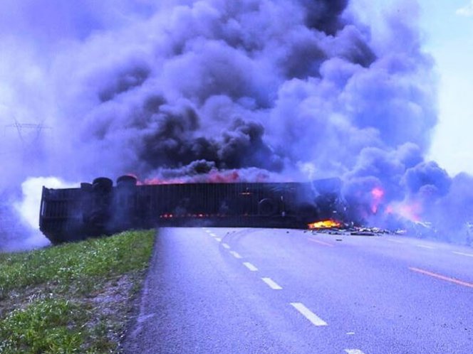 El segundo tractocamión partió de Ciudad Victoria con destino a Tampico. Jalaba dos contenedores vacíos y su operador falleció prensado y calcinado.