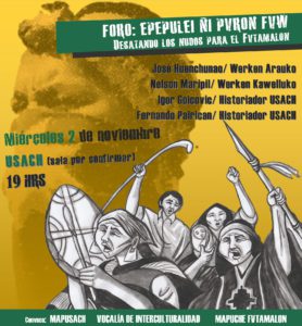 El levantamiento del Mapuche Fvtamalon, año a año, se lleva a cabo mediante diversas manifestaciones de difusión y conversación, en esta ocasión, la conmemoración de este hecho histórico se realizará por medio de un foro-conversatorio denominado Epepulei ñi pvron fvw – “Desatando los nudos para el Fvtamalon”, a realizarse el miércoles 2 de noviembre a las 19 hrs. en el recinto universitario Usach.