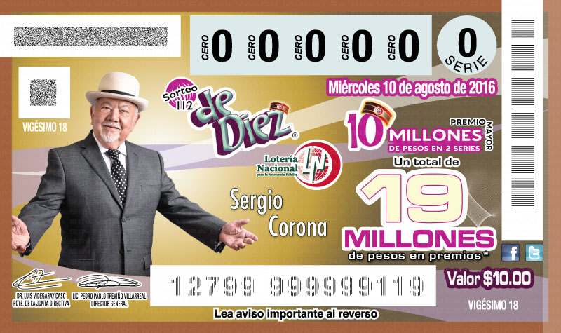 La Lotería Nacional para la Asistencia Pública tiene el agrado de invitarlo al Sorteo de Diez No. 112, con el que rendirá un Homenaje al Primer Actor, Sergio Corona, quien hace más de 70 años inició su trayectoria artística como bailarín y ha participado en innumerables telenovelas, programas y películas mexicanas.