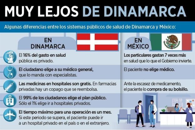 No es necesario tener una postura política específica ni pertenecer a un grupo determinado para comprender que los datos disponibles sobre el sistema de salud en nuestro país demuestran que lo que afirma Andrés Manuel es falso. Aunque se diga que se atiende a más personas que en Dinamarca, esto se debe simplemente a que somos 2060% más mexicanos que daneses (127.5 millones vs. 5.9 millones). Sin embargo, el sistema de salud mexicano no podrá ser comparable al de Dinamarca, ya que no podrá proporcionar servicios de calidad similares a los que reciben los beneficiarios del sistema de salud escandinavo.