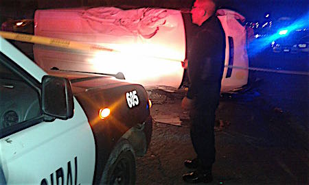 Los choferes al percatarse del robo, solicitaron el auxilio a los elementos que circulaban por ese lugar, quienes llevaron a cabo la persecución lo que derivó que los delincuentes perdieran el control volcando la camioneta.