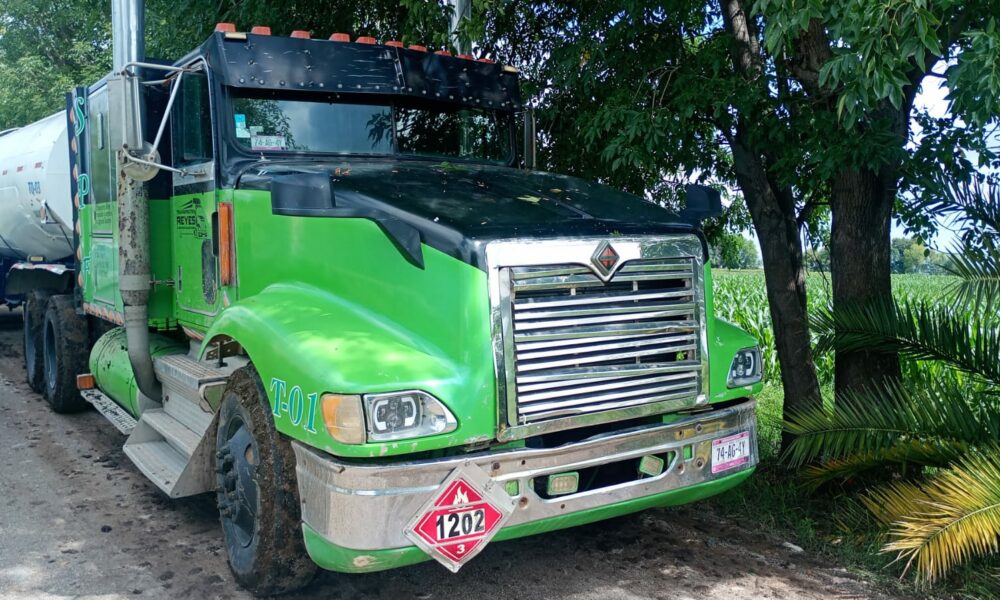 Se trató del tracto marca International, color verde con negro, con placas de circulación 74-AG- 74 para el servicio federal de carga, acoplado con una tanque color blanco, con capacidad para 42 mil litros, el cual fue detectado por los agentes que se encontraban en recorridos de vigilancia en la comunidad de Santa Matilde, quienes al pasar cerca de las parcelas, se percataron de la presencia de la pesada unidad y se acercaron para revisarla, percatándose del combustible que transportaba.
