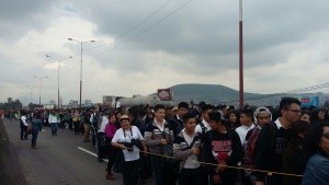 Alrededor de las 11:00 horas, los asistentes se reunieron a la altura de kilómetro 27 de la carretera federal México-Texcoco, donde iniciaron su caminata gritando: “El maestro me enseñó a escribir y a leer, y ahora con su ejemplo, a la Patria defender”.