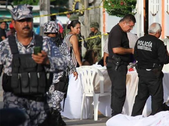 A un costado de las mesas yacían las víctimas y una más de acuerdo con lo reportado, fue trasladada a un hospital ya que presentaba signos vitales.