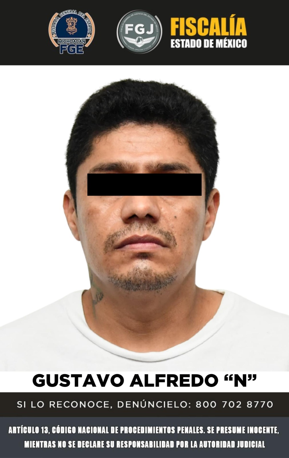 La Fiscalía invitó a la ciudadanía a denunciar si reconoce a Gustavo Alfredo “N” como responsable de otros delitos. Se puso a disposición el correo [email protected], el número 800 7028770 y la aplicación móvil FGJEdomex, disponible para iOS y Android.