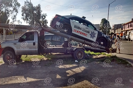 Patrulla lleva un mes abandonada sobre una grúa en Ecatepec