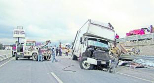 Un camión cargado de rollos de lona de vinil quedó destrozado luego de chocar contra el muro de contención de la carretera México-Toluca, para luego terminar volcado. El conductor de la unidad resultó lesionado y las labores de rescate causaron gran caos vial.Al parecer el exceso de velocidad y una distracción del conductor de un camión tipo Torton con caja cerrada y placas de circulación 184-DD-3, que traía varios centenares de tubos de polietileno.El accidente sucedió alrededor de las 19 horas sobre el kilómetro 44+700 de la carretera México-Toluca, el lugar conocido como Los Encinos, donde parte de la carretera quedó bloqueada a la circulación, pues tras el accidente policías federales y personal que labora en esta carretera cerraron la circulación desviándola para evitar otro accidente, mientras se hacían las labores para retirar el vehículo y su carga.Según reportes de automovilistas y de autoridades, al parecer el conductor del camión circulaba a gran velocidad en dirección a la Ciudad de México, y al parecer una distracción hizo que se dirigiera al muro de contención de un puente vehicular que se encuentra en el sitio.Según las marcas de los neumáticos en el pavimento, trató de frenar pero no logró evitar la colisión, lo que causó que la parte frontal del camión quedara destrozada y su caja se desgarrara a la mitad y la carga saliera volando.El accidente generó una fila de autos que circulaba lentamente por varios kilómetros, esta situación duró por al menos un par de horas mientras se laboraba para retirar el vehículo con la ayuda de trabajadores de la empresa y de una pesada grúa que logró levantar el vehículo y trasladarlo ante las autoridades.El operador del torton salió ileso; sin embargo, fue revisado por los paramédicos de Protección Civil (PC) de este municipio, para descartar alguna lesión, así mismo este fue llevado al Ministerio Público, donde quedó a disposición del agente para rendir su declaración y así deslindar responsabilidades. leer más