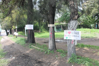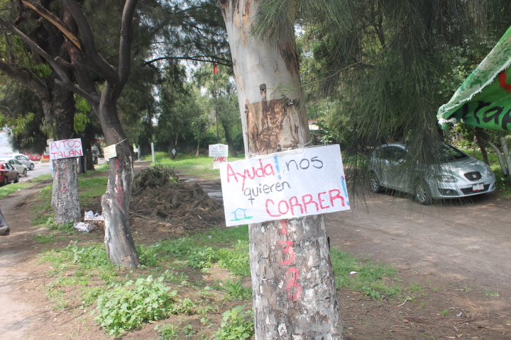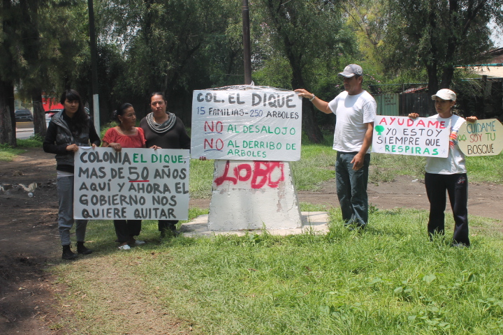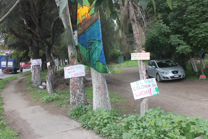 Ante esta situación los más de 30 residentes de esa comunidad, manifestaron su inconformidad y preocupación colocando letreros escritos sobre cartulinas en los troncos de los arboles donde inicia la colonia, con leyendas de protesta como “no al desalojo”, “no al derribo de árboles”, “no tengo voz para gritar pero tu si ayúdame”, “yo amo el dique no nos corran”, entre otros