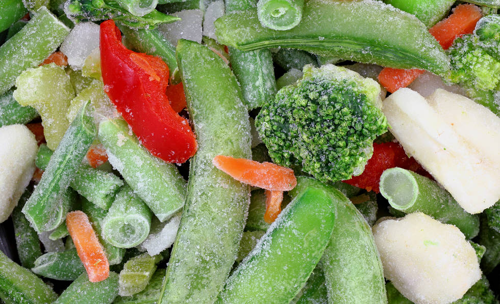 Los productos congelados conserva gran parte de su valor nutritivo, ya que son congelados rápidamente después de la cosecha, lo que preserva los productos inmediatamente. A menudo, los productos congelados se blanquean antes de la congelación, o son cocidos muy rápido en agua caliente y luego se enfrían con igual rapidez, para detener la actividad enzimática en el producto, y que afectaría de forma natural en el sabor, nutrientes y calidad en el tiempo. El blanqueo afectará a los nutrientes al igual que cocinarlos, pero la congelación hará que los preserves. En realidad, no es raro que los productos congelados tengan un mayor valor nutritivo que los productos frescos, que han envejecido almacenados después de la cosecha.